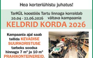 Hea korteriühistu juhatus! TarKÜL koostöös Tartu linnaga korraldab 20.04.2026 - 22.06.2026 vältava kampaania "Keldrid korda 2026"